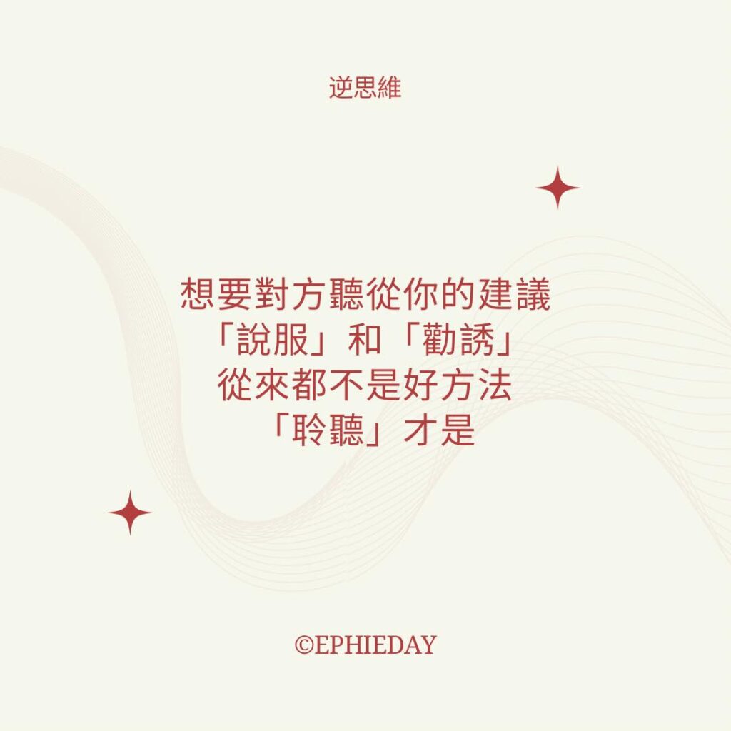 如果沒有對的方式,是無法讓對方實行並事後無悔的。